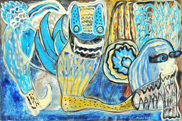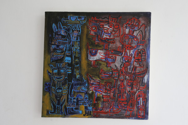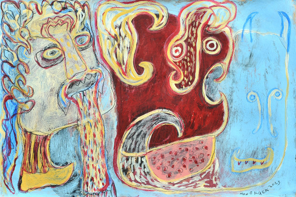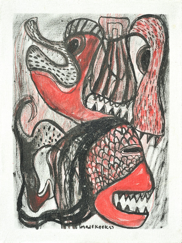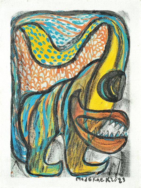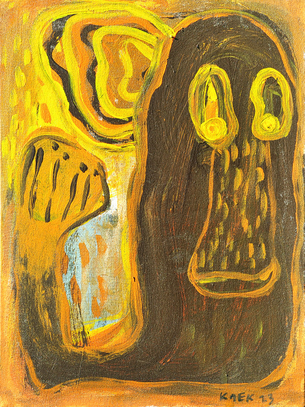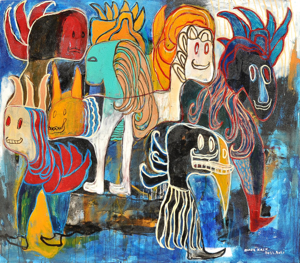 -Made Kaek is an artist hailing from Denpasar and currently residing in Sukawati, Gianyar, Bali. He completed his higher education as a graduate in law from Atma Jaya University in Yogyakarta between the years 1985 and 1991. This endeavor was primarily influenced by his father's profession as a legal practitioner in Denpasar. During his tenure in Yogyakarta, Made Kaek became an integral part of the Bali artisan collective known as "Sanggar Dewata". Here, he learned the art of painting under the guidance of Nyoman Gunarsa (1944-2017), a prominent Balinese artist who lived in Yogyakarta and held a teaching position at the Yogyakarta Institute of the Arts (ISI). After graduating in 1991, Made Kaek returned to Bali to earnestly pursue his artistic aspirations. In the year 2000, he established the Pharos Gallery located in Sukawati. Made Kaek's artistic process is characterized by a sincere harmony with his inner reflections. During moments of tranquil introspection, he often experiences vivid visions - visual manifestations of formless beings shrouded in mystery. Though initially perplexing, he eventually embraced these visions, realizing their imperative need for realization. These manifestations take shape as singular or grouped entities, adorned with one or more eyes, wide mouths, and varying numbers of limbs. They materialize and dissolve like fleeting apparitions in mist. Made Kaek's creative impulse revolves around the goal of capturing these ethereal figures onto paper or canvas - a genuine desire to depict the countenance of these imaginative entities. Reflecting on his methodology, he shares, "The artworks I create are the fruits of instant visual insights derived from introspection. These artworks are also inspired by the environment around me, including the motifs seen on Bali's sculptures and carvings that adorn my living space. These elements resonate with my social interactions, fostering relationships with diverse individuals and experiences, thus facilitating my profound journey of learning."
