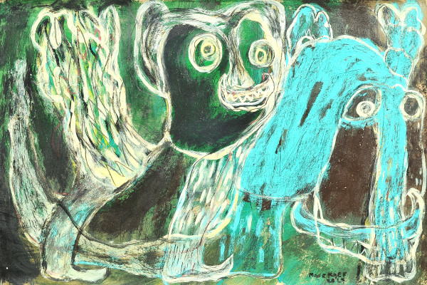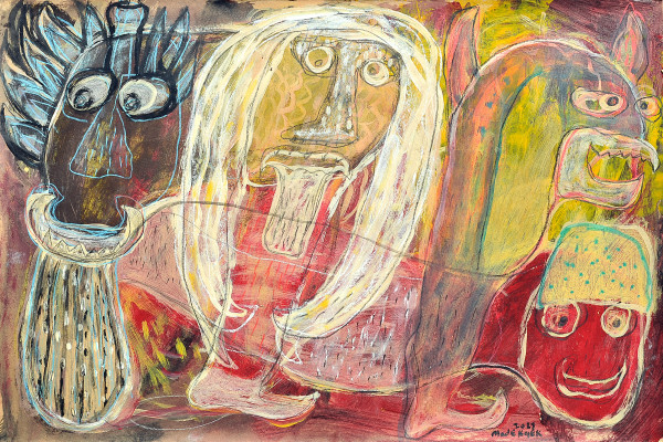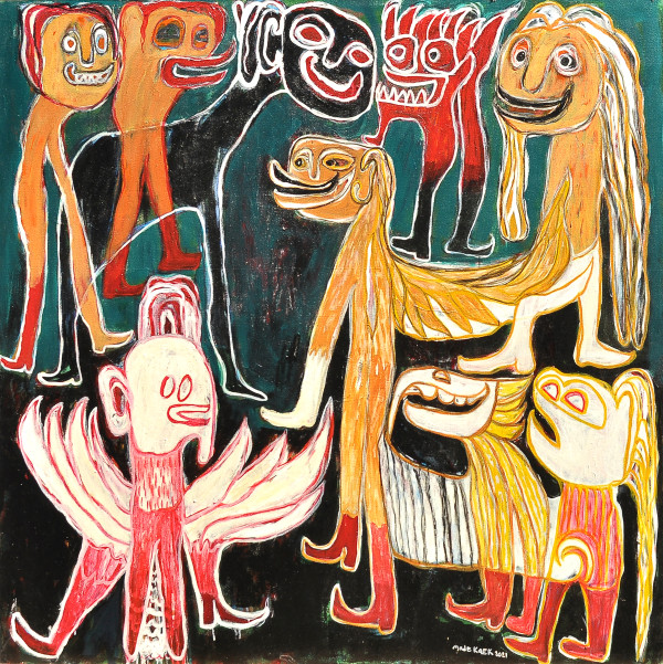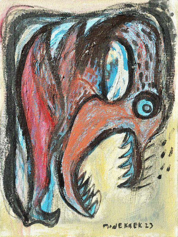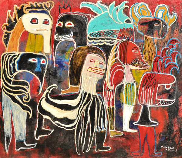 -Made Kaek is an artist hailing from Denpasar and currently residing in Sukawati, Gianyar, Bali. He completed his higher education as a graduate in law from Atma Jaya University in Yogyakarta between the years 1985 and 1991. This endeavor was primarily influenced by his father's profession as a legal practitioner in Denpasar. During his tenure in Yogyakarta, Made Kaek became an integral part of the Bali artisan collective known as "Sanggar Dewata". Here, he learned the art of painting under the guidance of Nyoman Gunarsa (1944-2017), a prominent Balinese artist who lived in Yogyakarta and held a teaching position at the Yogyakarta Institute of the Arts (ISI). After graduating in 1991, Made Kaek returned to Bali to earnestly pursue his artistic aspirations. In the year 2000, he established the Pharos Gallery located in Sukawati. Made Kaek's artistic process is characterized by a sincere harmony with his inner reflections. During moments of tranquil introspection, he often experiences vivid visions - visual manifestations of formless beings shrouded in mystery. Though initially perplexing, he eventually embraced these visions, realizing their imperative need for realization. These manifestations take shape as singular or grouped entities, adorned with one or more eyes, wide mouths, and varying numbers of limbs. They materialize and dissolve like fleeting apparitions in mist. Made Kaek's creative impulse revolves around the goal of capturing these ethereal figures onto paper or canvas - a genuine desire to depict the countenance of these imaginative entities. Reflecting on his methodology, he shares, "The artworks I create are the fruits of instant visual insights derived from introspection. These artworks are also inspired by the environment around me, including the motifs seen on Bali's sculptures and carvings that adorn my living space. These elements resonate with my social interactions, fostering relationships with diverse individuals and experiences, thus facilitating my profound journey of learning."